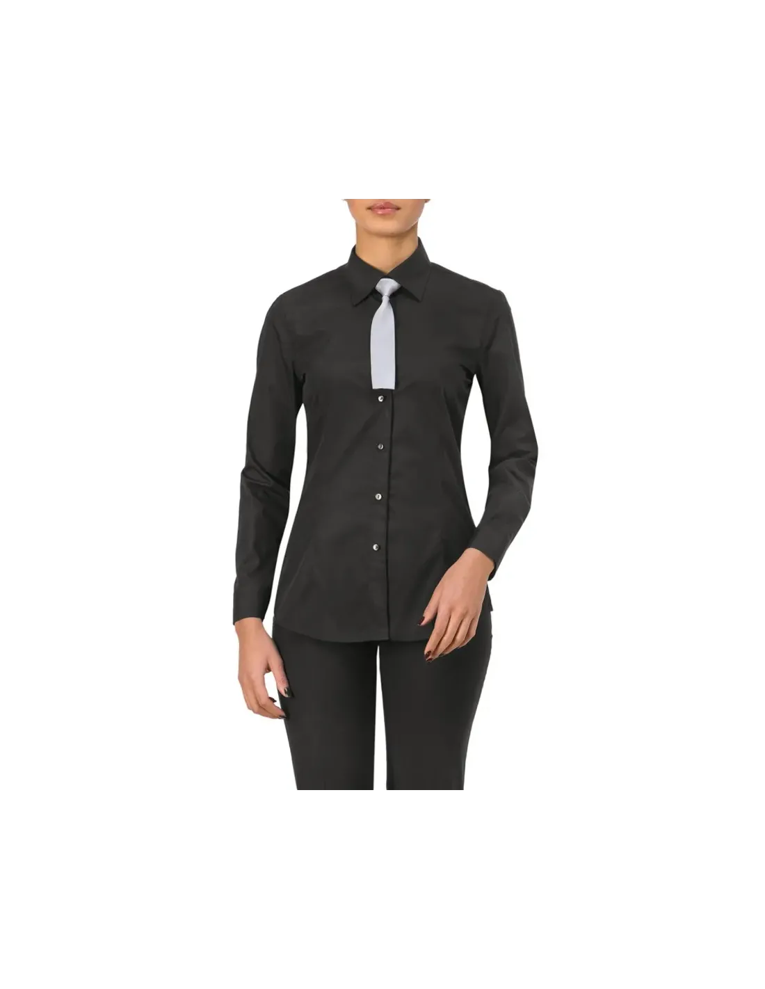Camicia da donna manica lunga 11P01O57 Camicia Sfiancata tessuto 110g leggero in tessuto Facile Stiro 65% poliestere e 35% cotone. Colletto classico, fondo camicia arrotondato. Polsino regolabile con bottone e bottoni tono su tono completano il capo. Ideale per creare la tua divisa. Colori disponibili Nero
