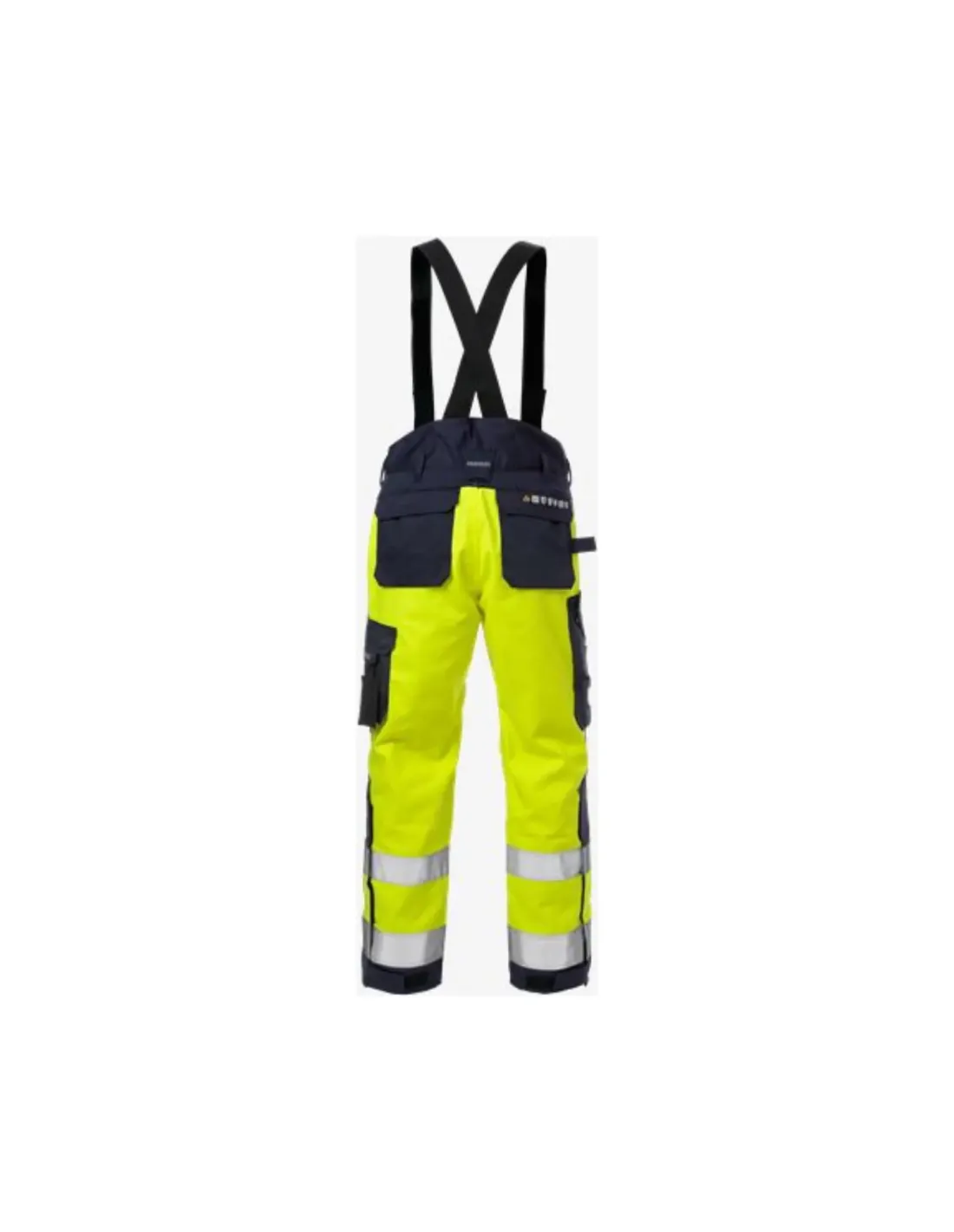 Pantaloni invernali ignifughi certificati per la saldatura e l'alta visibilità in classe 2. In durevole e confortevole materiale trattato con ritardante di fiamma, certificato per la protezione "strato su strato" per l'arco elettrico. Descrizione Tecnica : Completamente foderati / Bretelle elastiche rimovibili / Cintura porta attrezzi / 2 tasche anteriori con patta, automatico nascosto e cerniera / Doppia cucitura rinforzata al cavallo / 2 tasche posteriori rinforzate in CORDURA® con patta eautomatico / Tasca porta metro rinforzata in CORDURA® con patta e automatico, bottone e passante per coltello con fodero / Tasca sulla gamba con patta e automatico nascosto, tasca porta telefono con patta e chiusura in velcro / Tasche porta ginocchiere rinforzate in CORDURA® con accesso interno / Tasche porta ginocchiere ad altezza regolabile / Pannelli di rinforzo in CORDURA® sulle cosce ed in colore di contrasto / Cerniere a scomparsa fino alle ginocchia / Ghette da neve / Fondo gamba regolabile e rinforzato in CORDURA® / Certificazione OEKO-TEX®. Approvati e certificati in conformità alla EN 61482-1-2 classe 1, EN 61482-1-1 ATPV 10,6 cal/cm² HAF 80,4% (vedi la tabella arco elettrico per le combinazioni di indumenti certificati per la EN 61482-1-2 classe 2 e arco aperto secondo la EN 61482-1-1), EN ISO 11612 A1 B1 C1 E2 F1, EN ISO 11611 A1 classe 1 (vedi la tabella Fiamma e Saldatura per le combinazioni degli indumenti certificati secondo la EN 11612 C2, E3, F2 a EN 11611 A1 classe 2), EN 1149-5, EN ISO 20471 classe 2 ed EN 342 Capo testato per il lavaggio industriale in conformità alla ISO 15797 Colore: Giallo alta visibilità/blu navy (F171) Materiale: 75% cotone, 24% poliestere, 1% fibra antistatica. Fodera 100% poliestere. Rinforzo in 100% poliammide. Peso: Tessuto esterno 365 g/m², fodera 315 g/m². Stagioni: Inverno