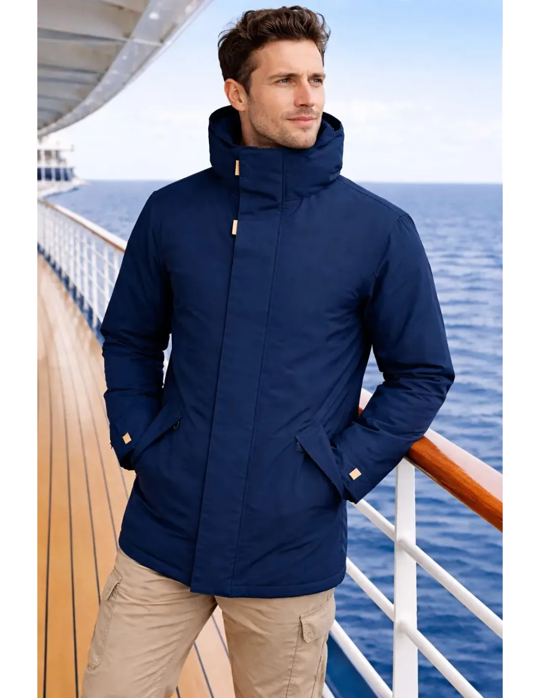 Parka invernale impermeabile e imbottito, ideale per proteggere da freddo, vento e pioggia sul ponte . Realizzato in tessuto 100% Oxford con cuciture nastrate e interno trapuntato in ovatta, garantisce comfort e isolamento termico.