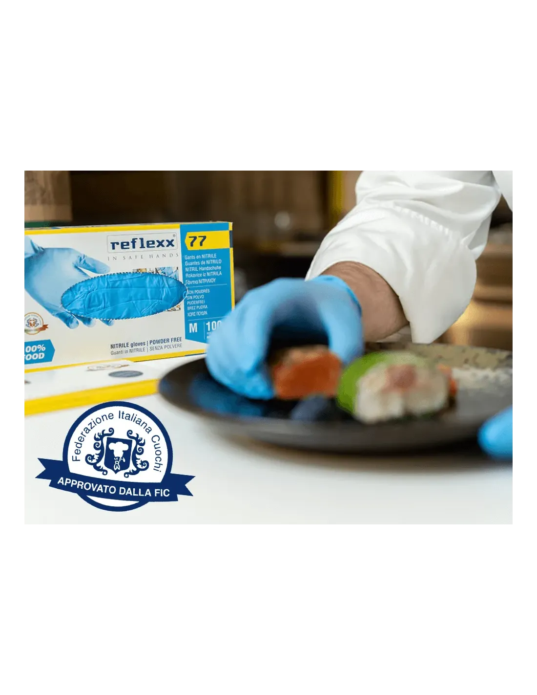 Applicazioni: I Guanti monouso in nitrile senza polvere per alimenti 77 sono indispensabili in cucine professionali, ristoranti, mense, industrie alimentari, pasticcerie e qualsiasi ambiente in cui è fondamentale garantire la sicurezza e l'igiene durante la manipolazione di alimenti.