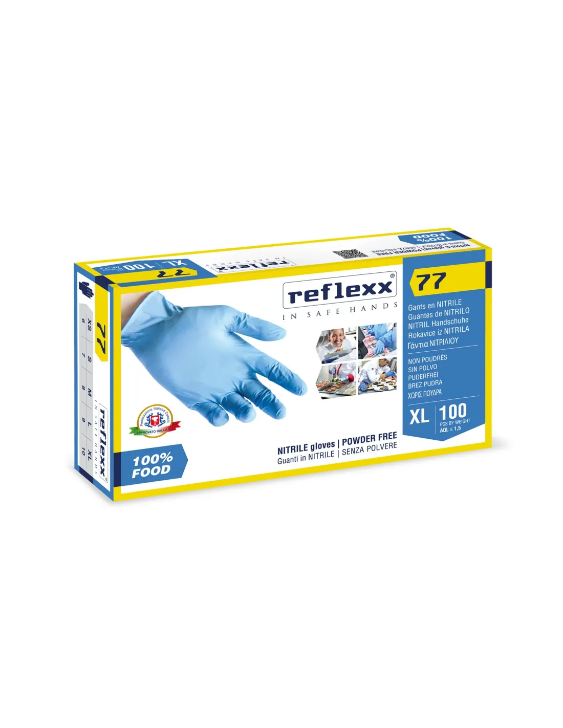 I Guanti monouso in nitrile senza polvere per alimenti 77 rappresentano la soluzione ideale per garantire igiene e sicurezza negli ambienti di lavoro in cui è necessario manipolare alimenti. Questi guanti monouso sono realizzati in nitrile di alta qualità, 100% privo di lattice, e presentano una finitura microruvida che assicura una presa salda e precisa. La loro leggerezza e sottigliezza (3 g) li rendono come una seconda pelle, fornendo un elevato livello di sensibilità al tatto, senza compromettere la resistenza ed elasticità, grazie alla qualità del materiale impiegato.