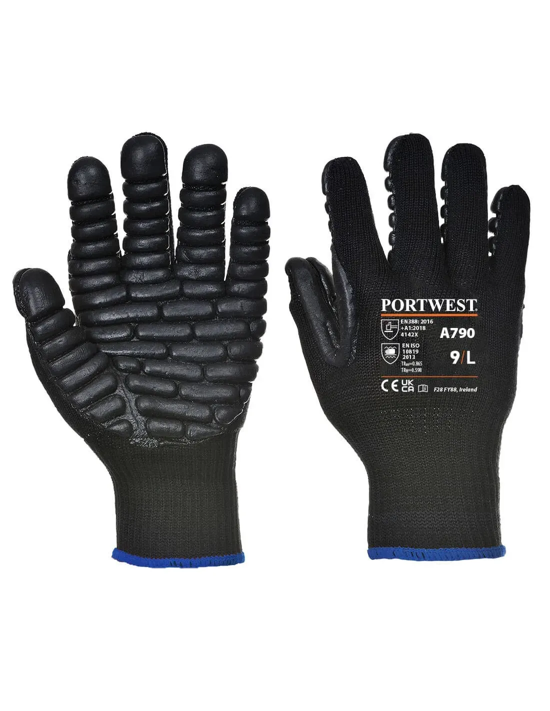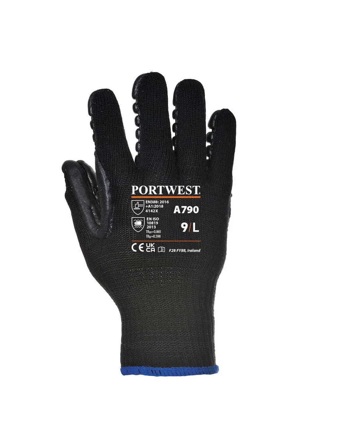 I Guanti Antivibrazione A790 di Portwest sono certificati EN ISO 21420, offrono un'eccellente protezione contro gli impatti e le vibrazioni, garantendo un comfort superiore e una maneggevolezza ottimale durante l'uso di elettro-utensili, martelli demolitori, martelli pneumatici e altre attività che coinvolgono vibrazioni intense. Progettati appositamente per ridurre gli effetti delle vibrazioni, questi guanti offrono una riduzione del 40% delle vibrazioni, garantendo una protezione efficace per le mani. Con una fodera resistente calibro 10 e una fodera traspirante senza cuciture, questi guanti offrono prestazioni superiori in situazioni impegnative.