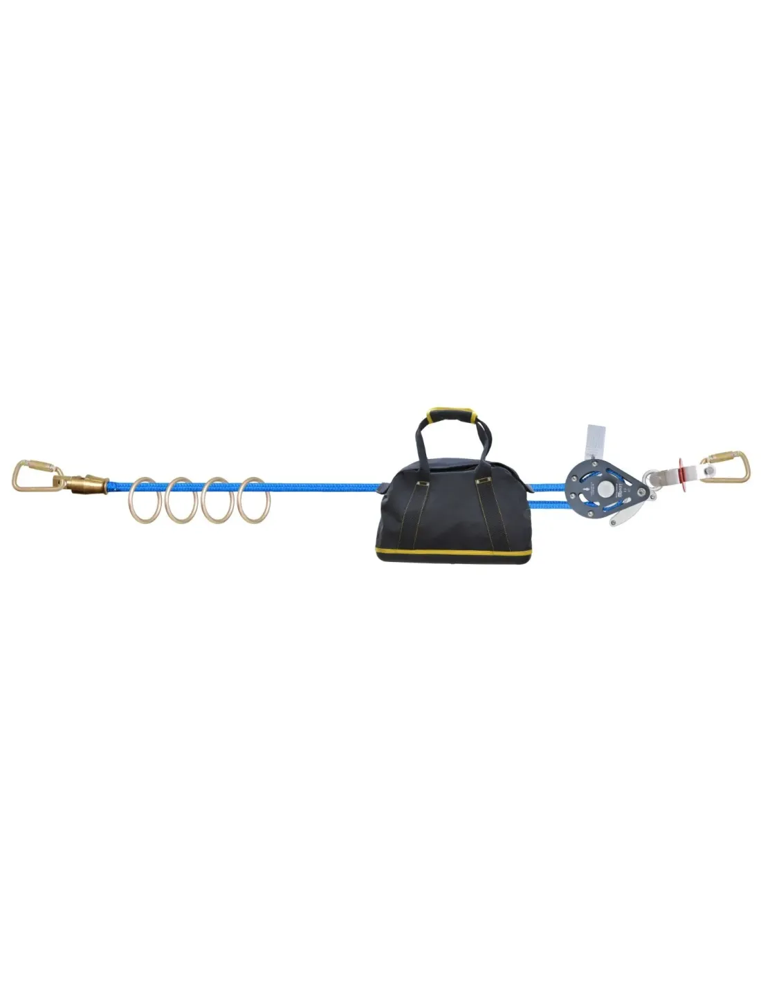 Per garantire la massima praticità e facilità d'uso, la Linea Vita Temporanea Orizzontale X4 Lite è dotata di un girello integrato in una delle estremità. Questo girello impedisce che la corda si attorcigli durante l'utilizzo, garantendo una libertà di movimento ottimale per gli utenti. La sua presenza elimina il fastidio delle corde annodate e contribuisce a una maggiore produttività sul luogo di lavoro.